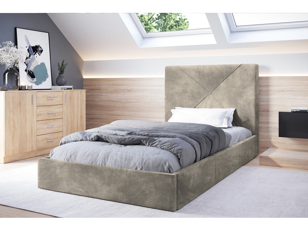 Łóżko tapicerowane Rino 90 Riviera 16 szary beż