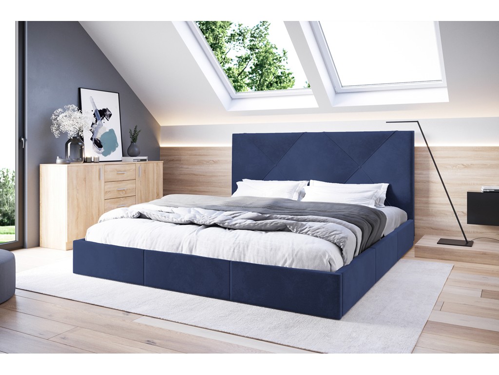 Łóżko Rino w rozmiarze 180 cm w kolorze granatowym doskonale podkreśla charakter nowoczesnych i eleganckich sypialni.
