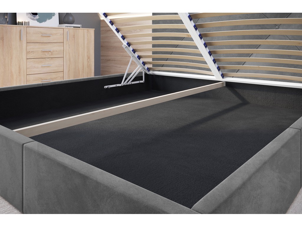 Łóżko tapicerowane Rino w rozmiarze 140 cm w tkaninie Riviera 91 w szarym odcieniu idealnie łączy nowoczesną estetykę z funkcjonalnością w średniej wielkości sypialni. Pikowane wezgłowie pełni funkcję dekoracyjną i stanowi wygodne oparcie dla pleców. Tapicerowana rama i solidny drewniany stelaż zapewniają stabilność, a praktyczny pojemnik zwiększa komfort codziennego użytkowania. Automaty sprężynowe ułatwiają obsługę i korzystanie z pojemnika.