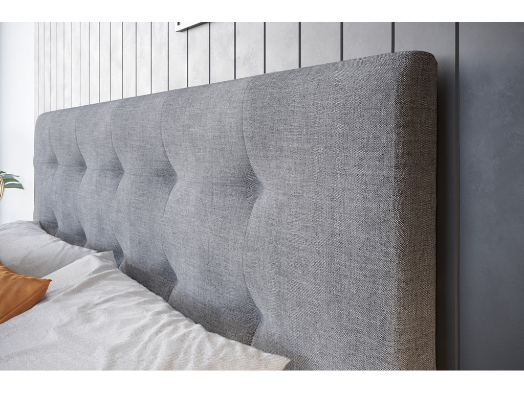 Łóżko Lilu w rozmiarze 160 cm to funkcjonalny model kontynentalny, idealny do nowoczesnych i przytulnych sypialni. Jasnoszara tkanina Inari 91 imituje naturalny len, a wbudowany materac bonelowy zapewnia komfortowy sen. Dwa pojemniki na pościel ułatwiają organizację przestrzeni, a chromowane nóżki dodają lekkości i nowoczesnego charakteru.