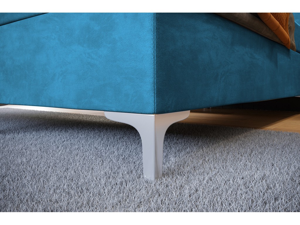 Pikowane wezgłowie i chromowane nóżki podnoszą komfort użytkowania i optycznie lekkość mebla.