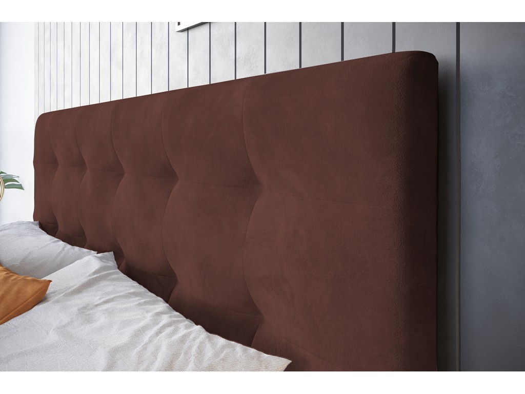 Łóżko kontynentalne Lilu w rozmiarze 180 cm to elegancka propozycja do nowoczesnej sypialni. Tkanina Kronos 29 w odcieniu łososiowym jest aksamitna i miękka, nadając wnętrzu przytulny charakter. Pikowane wezgłowie i dwa pojemniki na pościel zwiększają komfort użytkowania, a materac bonelowy zapewnia wygodny sen.