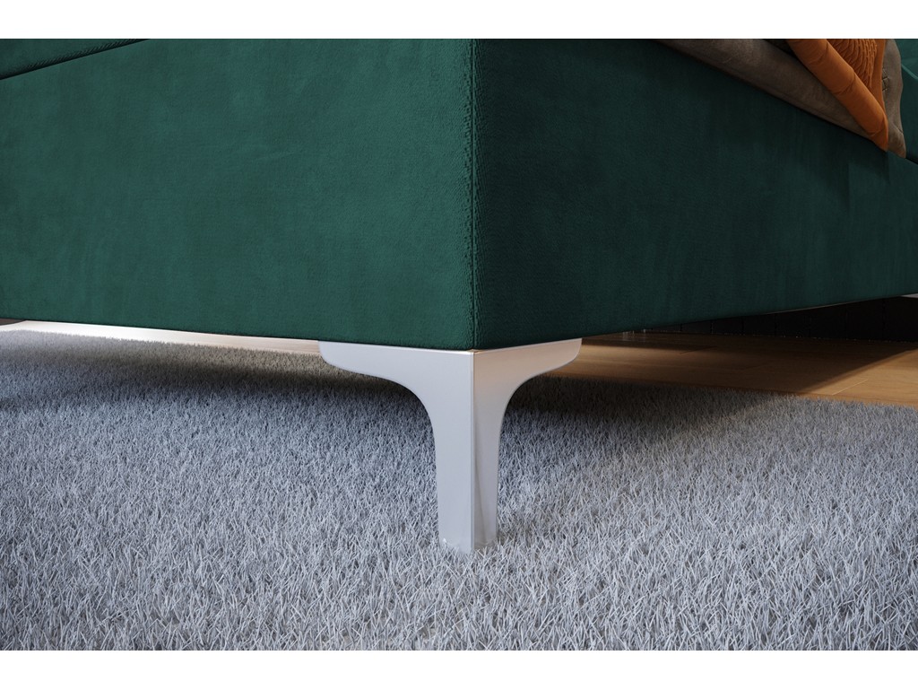 Pikowane wezgłowie oraz wysokie nóżki chromowane łączą wygodę z lekkością wizualną.