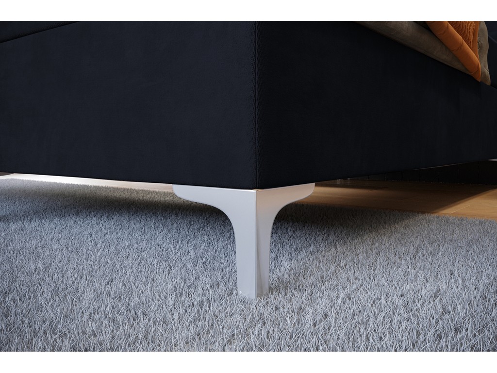 Łóżko kontynentalne Lilu w rozmiarze 160 cm w tkaninie Monolith 79 ciemny granat łączy elegancję z komfortem snu. Wysokie chromowane nóżki subtelnie unoszą bryłę łóżka, a pikowane wezgłowie stanowi wygodne oparcie. Dwa pojemniki na pościel zwiększają funkcjonalność i pomagają utrzymać porządek w sypialni.
