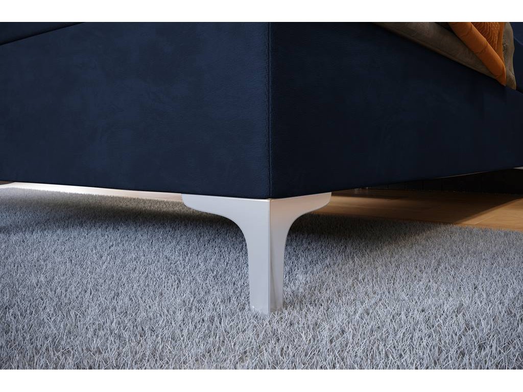 Łóżko kontynentalne Lilu w rozmiarze 140 cm w granatowej tkaninie Riviera 81 to kompaktowa propozycja do nowoczesnych i klasycznych sypialni. Model łączy elegancką formę z funkcjonalnością dzięki wbudowanemu materacowi bonellowemu, dwóm pojemnikom na pościel oraz wysokim chromowanym nóżkom, które nadają bryle lekkości.