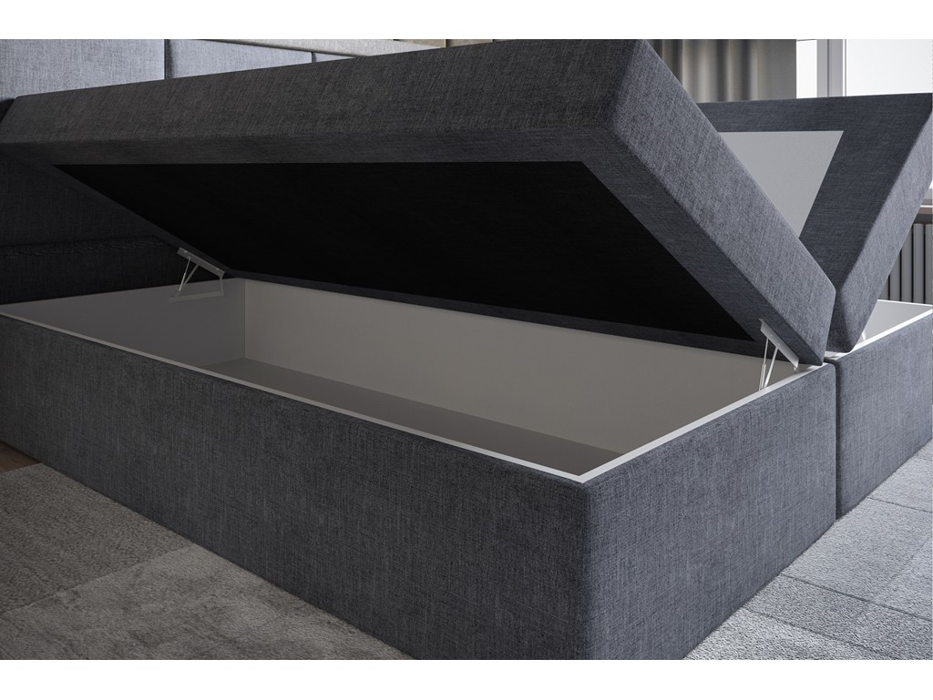 Kontynentalna konstrukcja z pojemnikami na pościel gwarantuje wygodę codziennego użytkowania i ułatwia utrzymanie porządku.