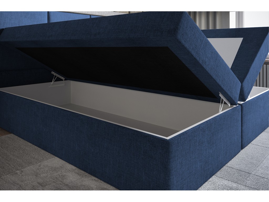 Niebieska tkanina Sawana 80 wprowadza świeżość i styl, a kontynentalna konstrukcja z pojemnikami zapewnia praktyczne rozwiązania.
