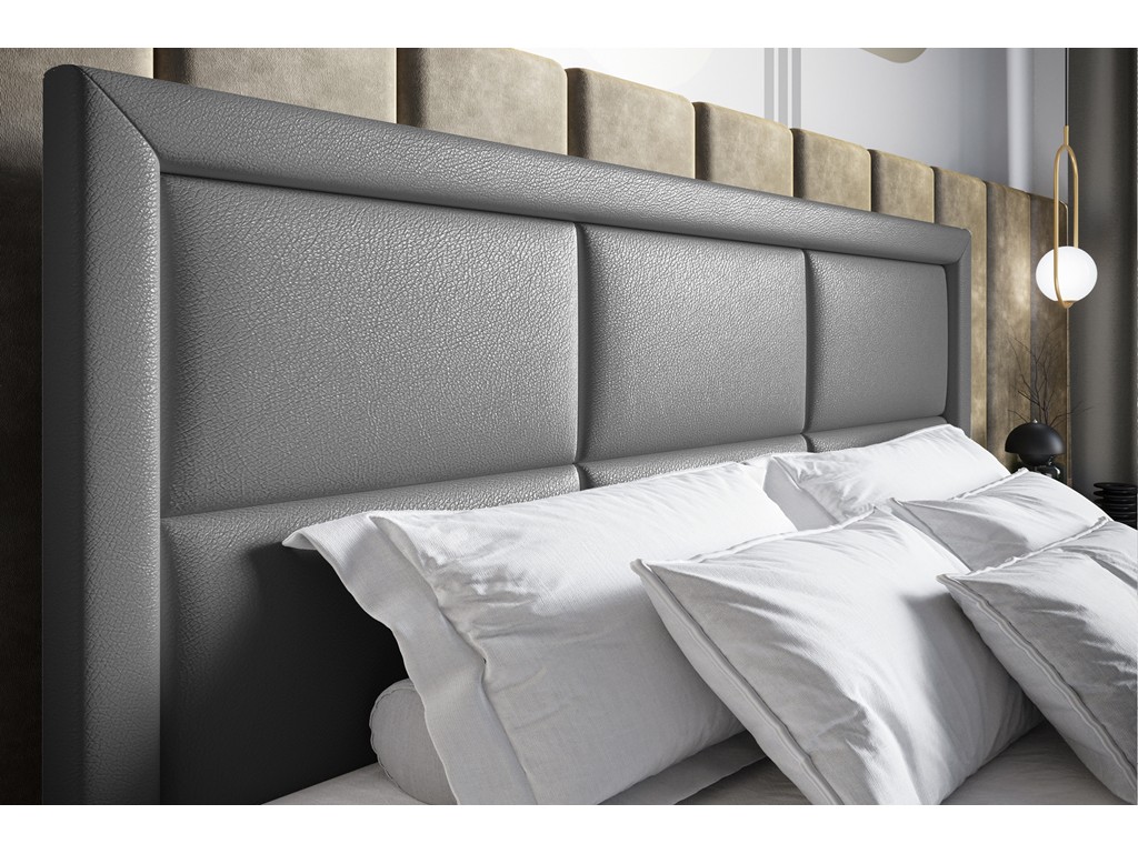 Kontynentalna konstrukcja z pojemnikami na pościel pozwala na wygodne przechowywanie, a pikowane wezgłowie dodaje klasy i komfortu.
