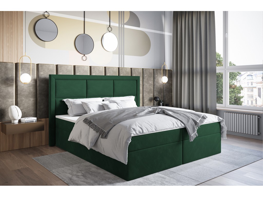 Zielona tkanina Kronos 19 dodaje wnętrzu głębi i stylu, a kontynentalna konstrukcja zapewnia wysoki komfort snu każdego dnia.