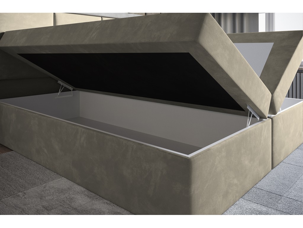 Kontynentalna konstrukcja oraz dwa pojemniki na pościel zapewniają komfort codziennego użytkowania.