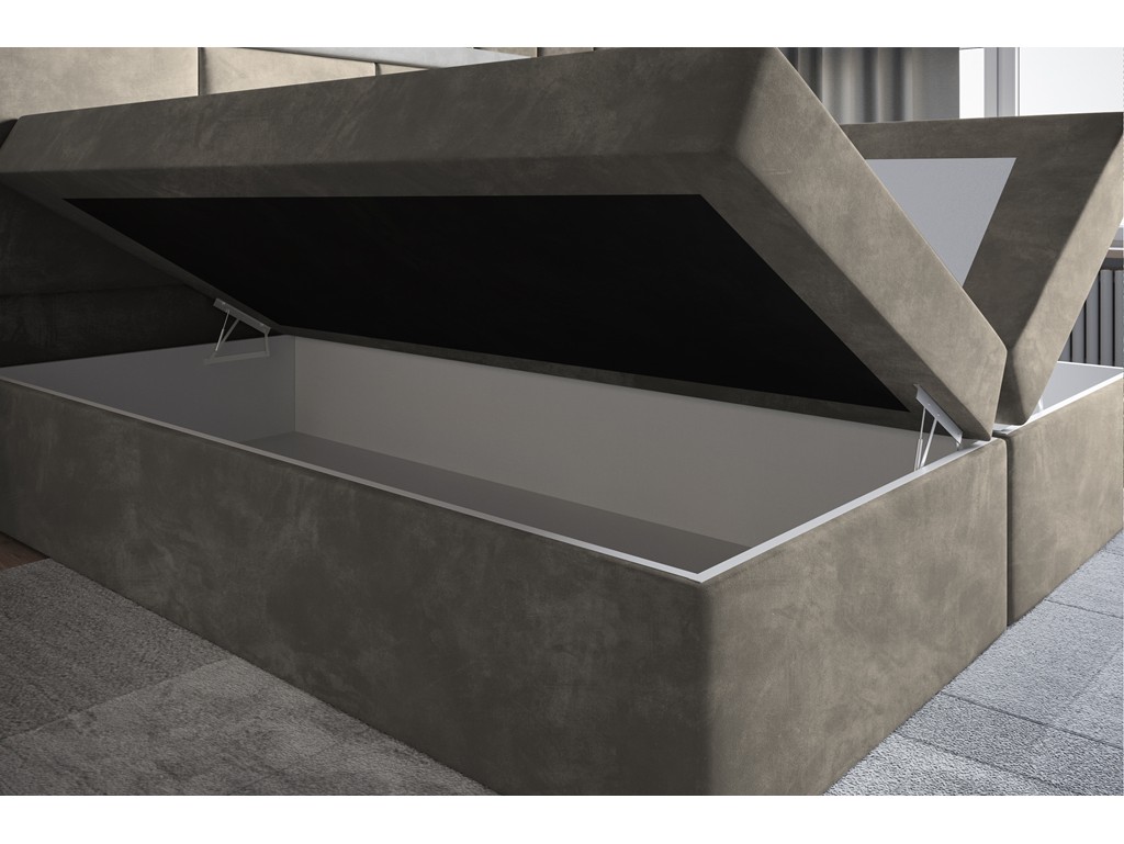 Kontynentalna konstrukcja i pojemniki na pościel zapewniają wygodę oraz praktyczne rozwiązania w codziennym użytkowaniu.