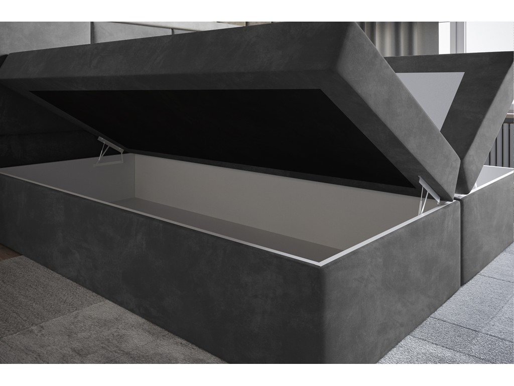 Dwa pojemniki ułatwiają przechowywanie pościeli, a kontynentalna konstrukcja zapewnia wygodę i komfort snu każdego dnia.