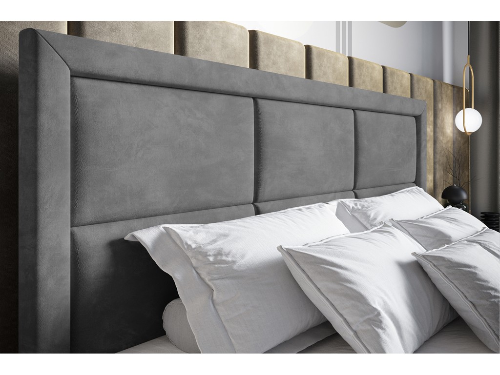 Pikowane wezgłowie łączy elegancję z komfortem, a aksamitna tkanina Riviera 91 dodaje subtelnego połysku.