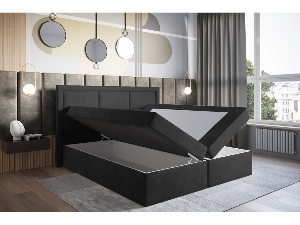 Dwa pojemniki na pościel zwiększają funkcjonalność, a kontynentalna konstrukcja zapewnia wygodę i stabilność podczas odpoczynku.