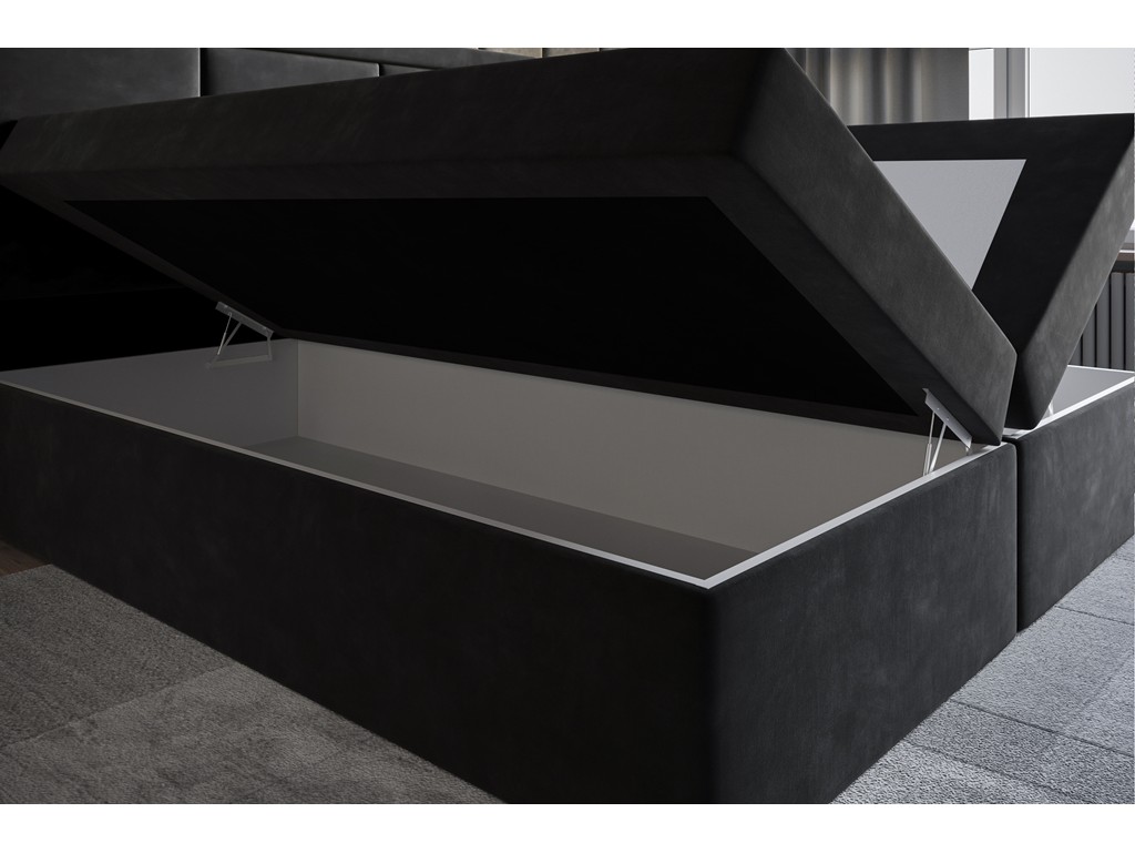 Kontynentalna konstrukcja oraz dwa pojemniki na pościel zapewniają wygodę i praktyczność.