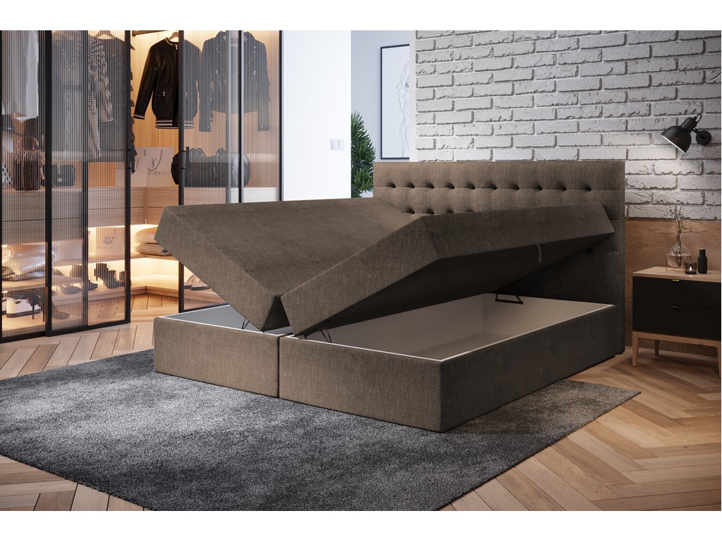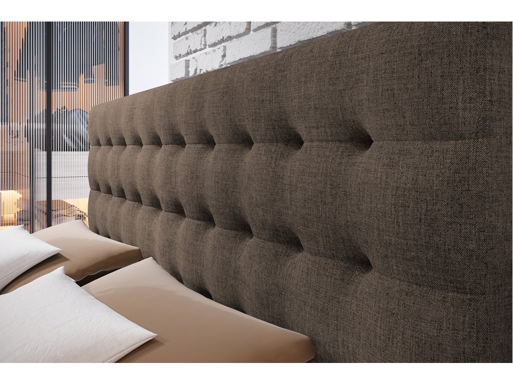 Tapicerowane wezgłowie łączy elegancję z funkcjonalnością, a kontynentalna konstrukcja i wysokiej jakości materac bonelowy gwarantują komfortowy sen.