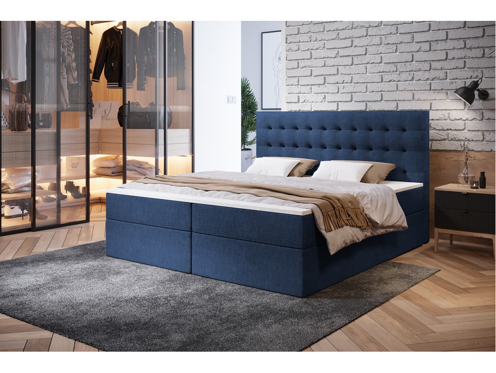Kontynentalna konstrukcja zapewnia wygodny sen, a pojemniki na pościel pomagają w organizacji przestrzeni.