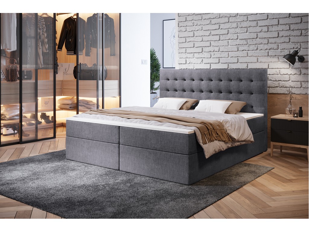 Kontynentalna konstrukcja gwarantuje wygodę snu, a pojemniki na pościel pomagają w utrzymaniu porządku.