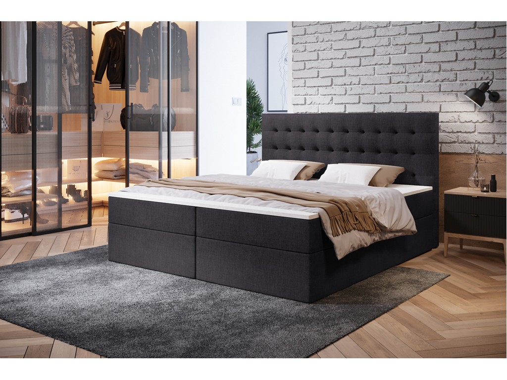 Pojemniki na pościel pomagają utrzymać porządek, a kontynentalna konstrukcja zapewnia wysoki komfort snu.