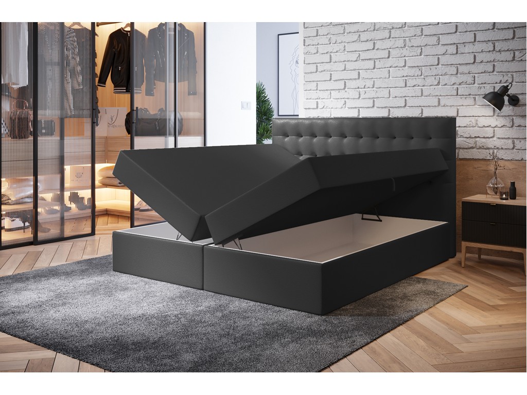 Czy powierzchnia spania wykonana jest z tej samej tkaniny co tapicerka łóżka? - Nie, powierzchnia spania została wykonana z dedykowanej czarnej tkaniny obiciowej materacowej. Takie rozwiązanie poprawia cyrkulację powietrza, zwiększa komfort snu i zapobiega ślizganiu się pościeli.