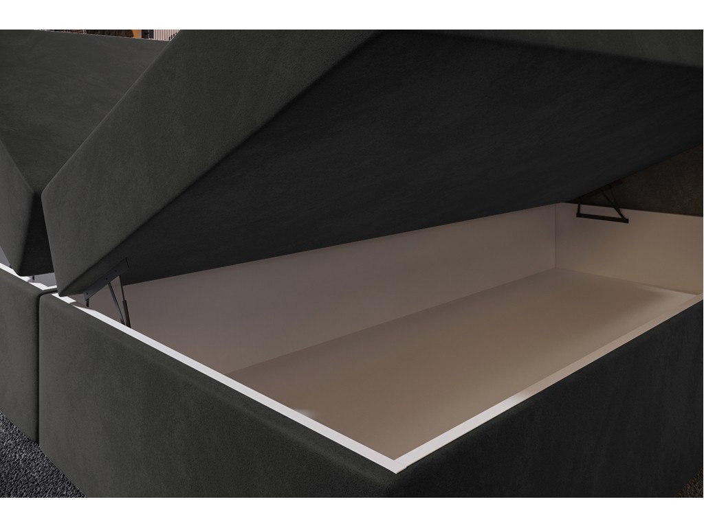 Czy powierzchnia spania wykonana jest z tej samej tkaniny co tapicerka łóżka? - Nie, powierzchnia spania została wykonana z dedykowanej czarnej tkaniny obiciowej materacowej. Takie rozwiązanie poprawia cyrkulację powietrza, zwiększa komfort snu i zapobiega ślizganiu się pościeli.