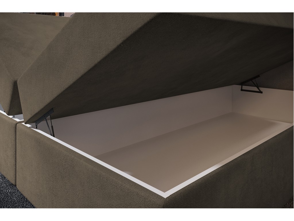 Dwa pojemniki pomagają utrzymać porządek, a kontynentalna konstrukcja gwarantuje wygodny sen.
