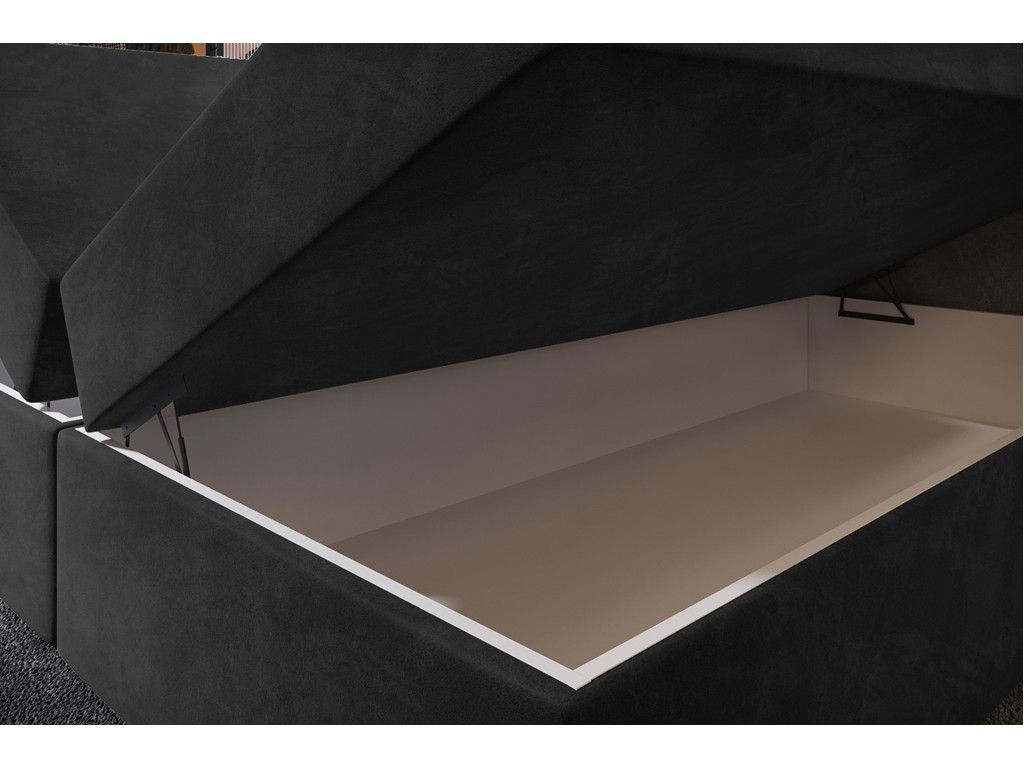 Czy powierzchnia spania wykonana jest z tej samej tkaniny co tapicerka łóżka? - Nie, powierzchnia spania została wykonana z dedykowanej czarnej tkaniny obiciowej materacowej. Takie rozwiązanie poprawia cyrkulację powietrza, zwiększa komfort snu i zapobiega ślizganiu się pościeli.