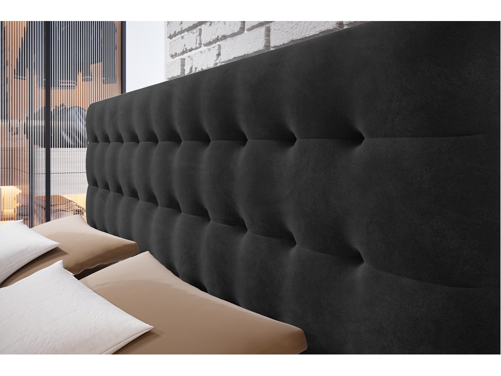 Tapicerowane wezgłowie i aksamitna tkanina Riviera wprowadzają elegancję i przytulność.