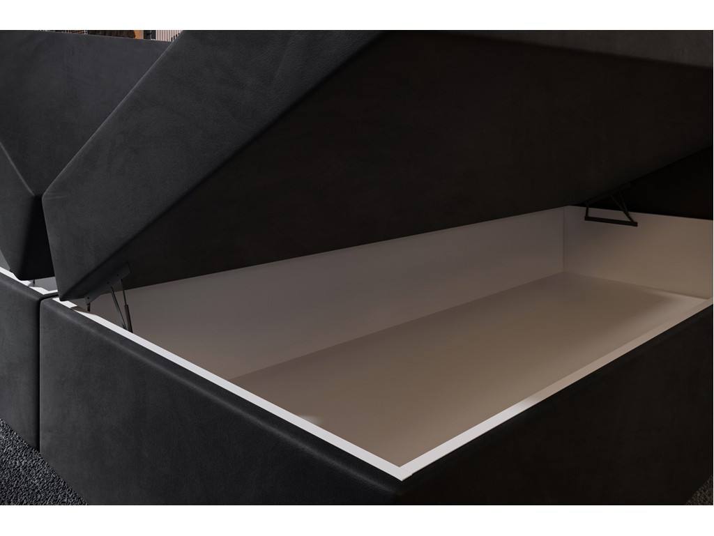 Czy powierzchnia spania wykonana jest z tej samej tkaniny co tapicerka łóżka? - Nie, powierzchnia spania została wykonana z dedykowanej czarnej tkaniny obiciowej materacowej. Takie rozwiązanie poprawia cyrkulację powietrza, zwiększa komfort snu i zapobiega ślizganiu się pościeli.