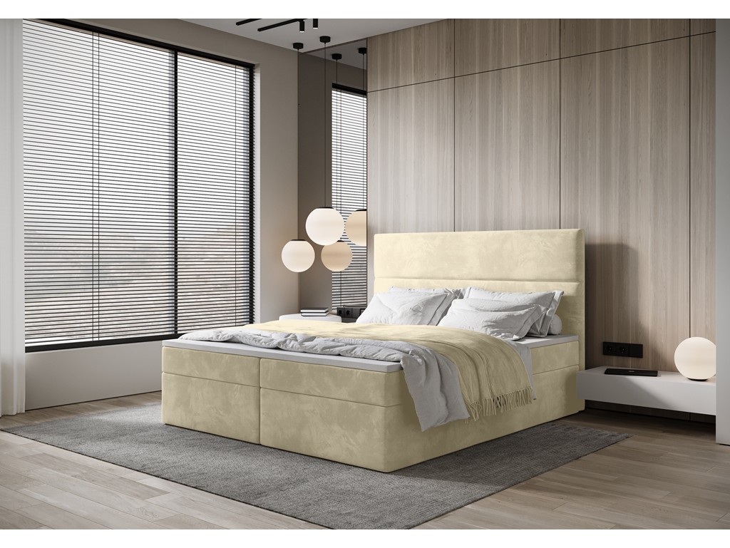 Łóżko kontynentalne Fado 4 w rozmiarze 140 cm w tkaninie Monolith 02 w kolorze ecru to subtelna i elegancka propozycja do nowoczesnej sypialni. Tapicerowane wezgłowie zapewnia wygodne oparcie oraz podkreśla charakter mebla, a wbudowane materace bonelowe gwarantują stabilne podparcie i komfortowy sen każdej nocy.