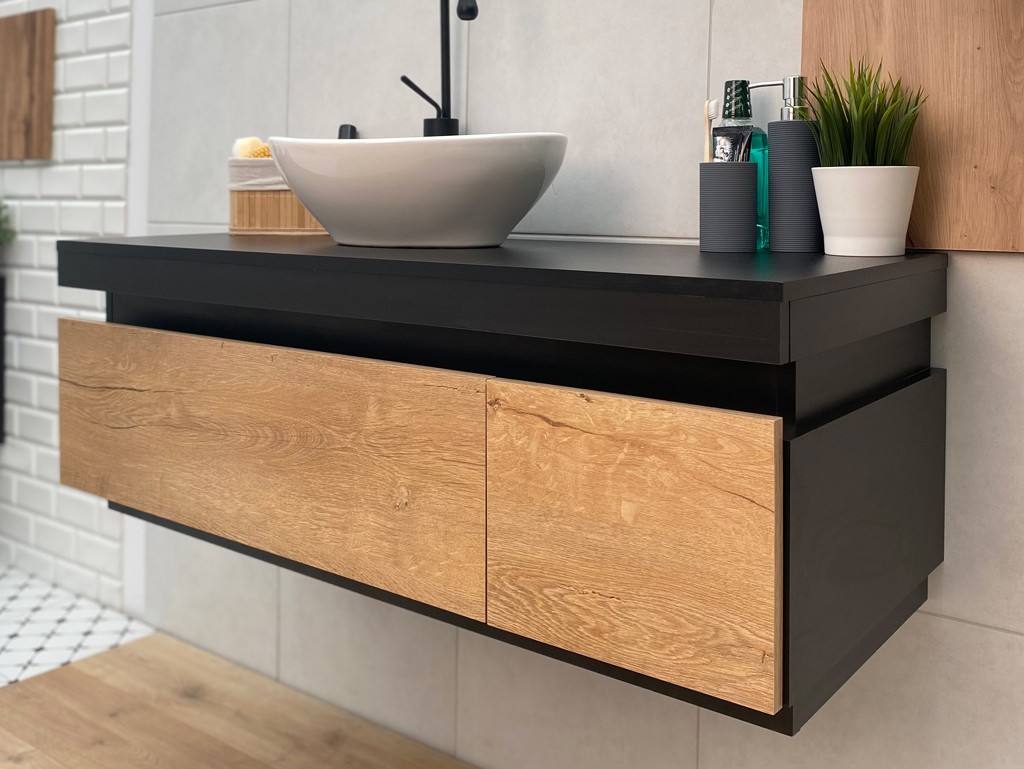 Konstrukcja wisząca zapewnia nowoczesny wygląd i więcej miejsca pod szafką.