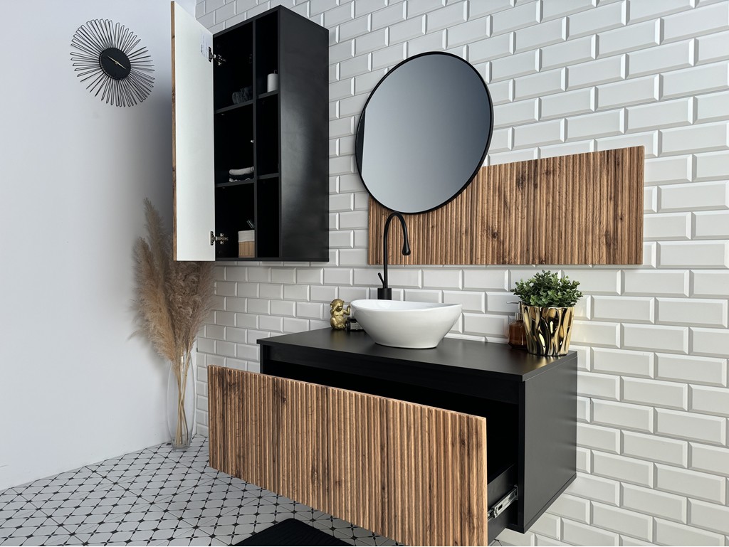 Łazienka Wota 1 czarny mat/dąb wotan zestaw mebli wiszących