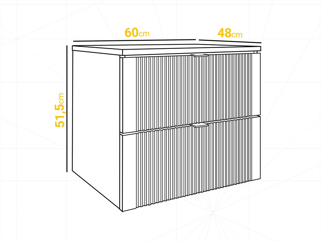 Szafka Daki 60 w kolorze biała perła to eleganczne i funkcjonalne rozwiązanie do nowoczesnych łazienek. Ryflowane fronty o subtelnym połysku nadają meblowi lekkości, a montaż wiszący ułatwia utrzymanie czystości. Idealna do jasnych, minimalistycznych wnętrz.