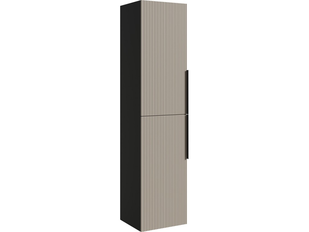 Słupek wiszący Kler 150 to najwyższy model z kolekcji Kler, zaprojektowany dla dużych łazienek i potrzeb dodatkowej przestrzeni do przechowywania. Połączenie antracytowego korpusu z ryflowanymi frontami w kolorze kaszmiru nadaje wnętrzu elegancki, nowoczesny charakter. Wisząca konstrukcja ułatwia utrzymanie czystości, a pojemne półki zapewniają funkcjonalne przechowywanie.