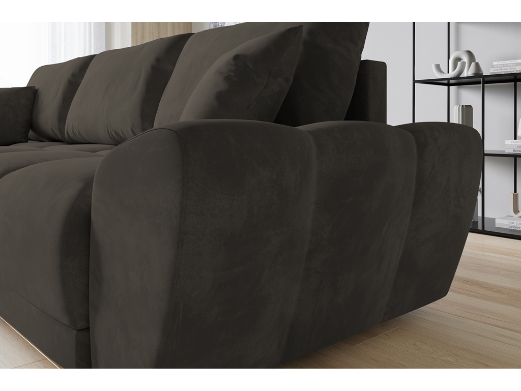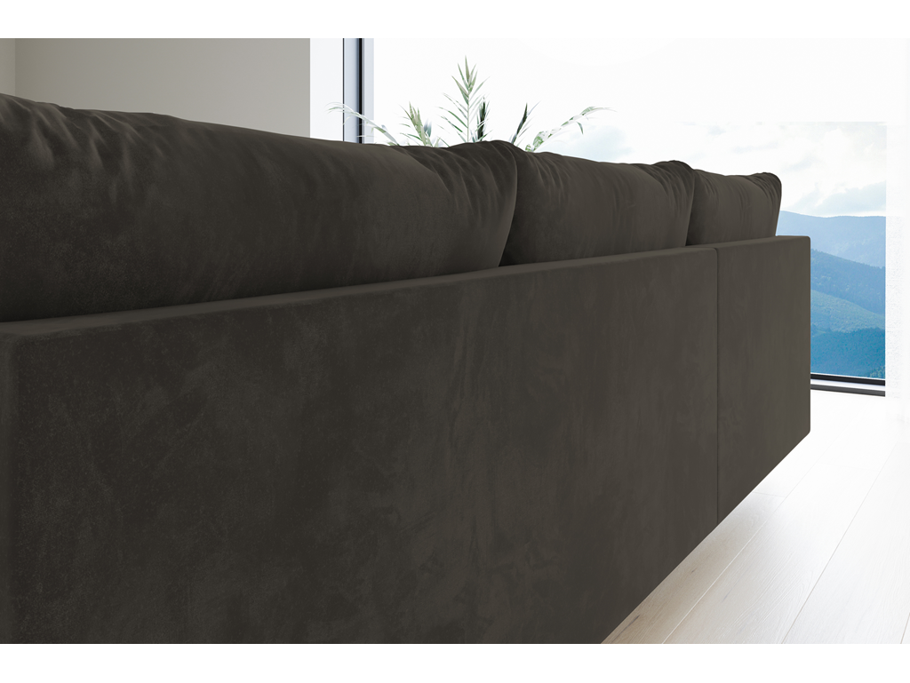 Miękki welur nadaje mu przytulności, a wysokiej jakości wypełnienie zapewnia komfort w użytkowaniu.