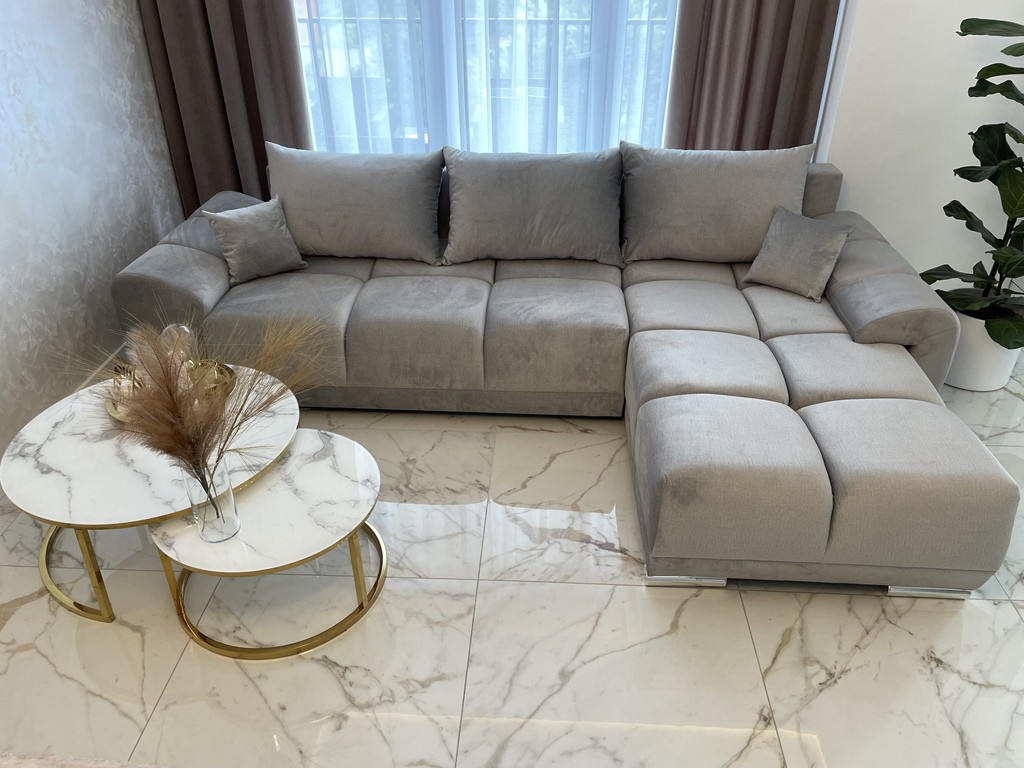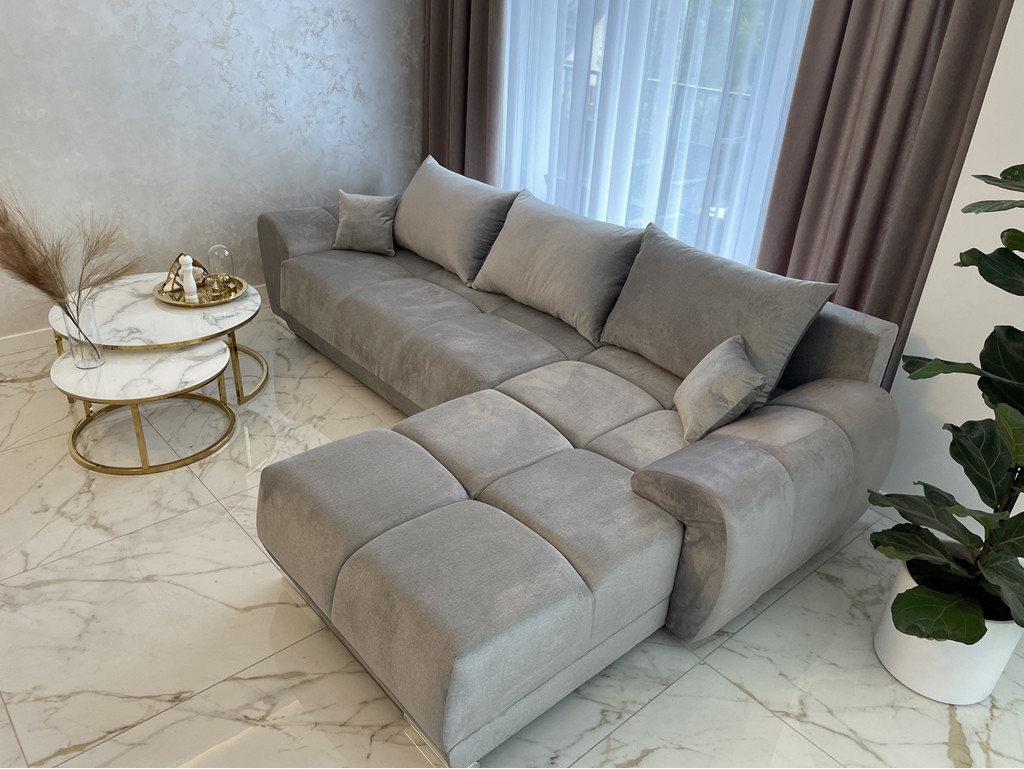 Narożnik Bego L MO-20 wyróżnia się harmonijną formą i neutralną kolorystyką, która pasuje zarówno do nowoczesnych, jak i klasycznych wnętrz.