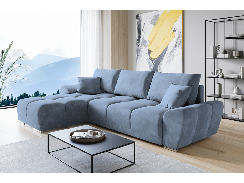 Narożnik Bego L w odcieniu szaro-niebieskim Monolith 70 to połączenie komfortu i nowoczesnej formy. Miękki welur przyjemny w dotyku oraz sprężyste siedzisko z pianki HR gwarantują wygodę codziennego użytkowania. Uniwersalny montaż pozwala dopasować układ do układu pomieszczenia, a dostawa realizowana jest w ciągu 21-30 dni. ⟵Zobacz całą kolekcję Bego