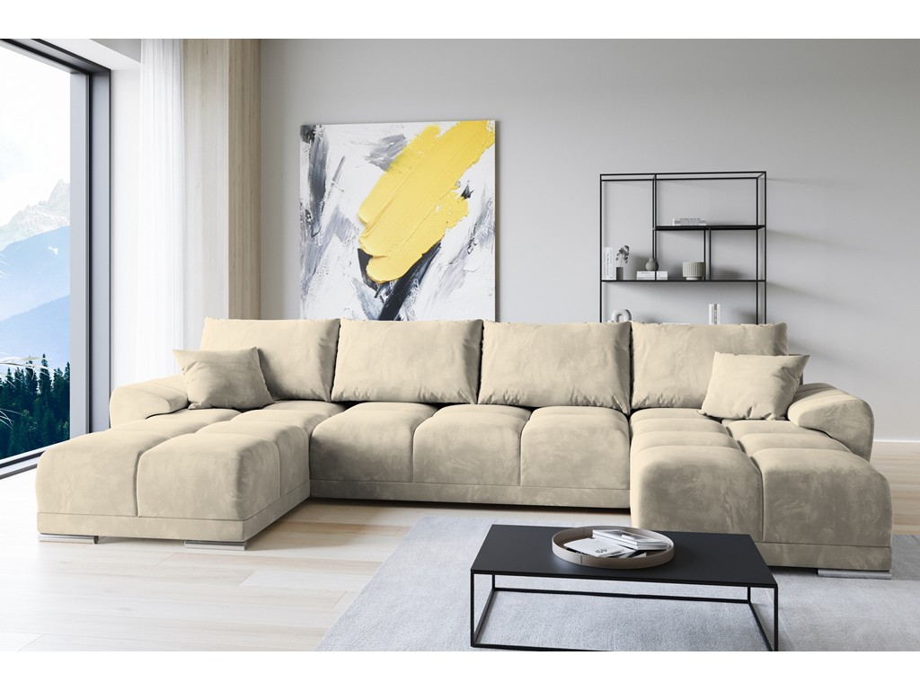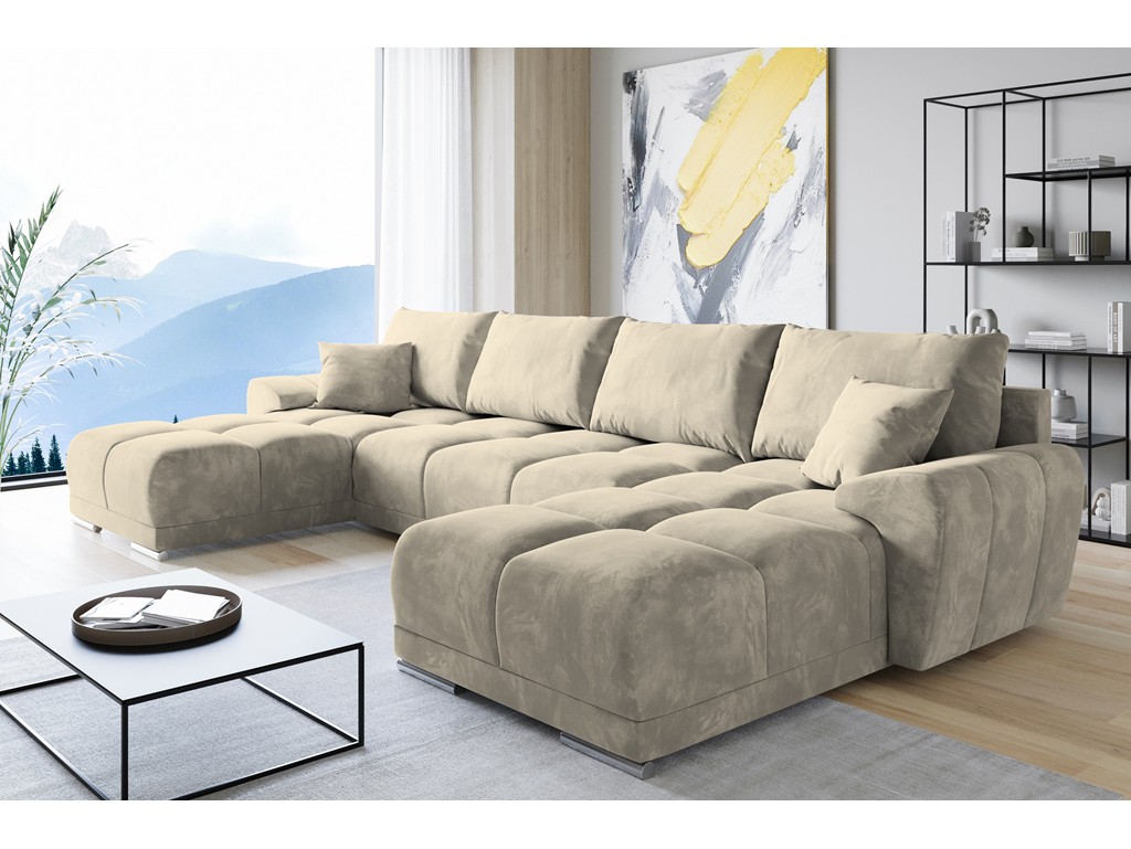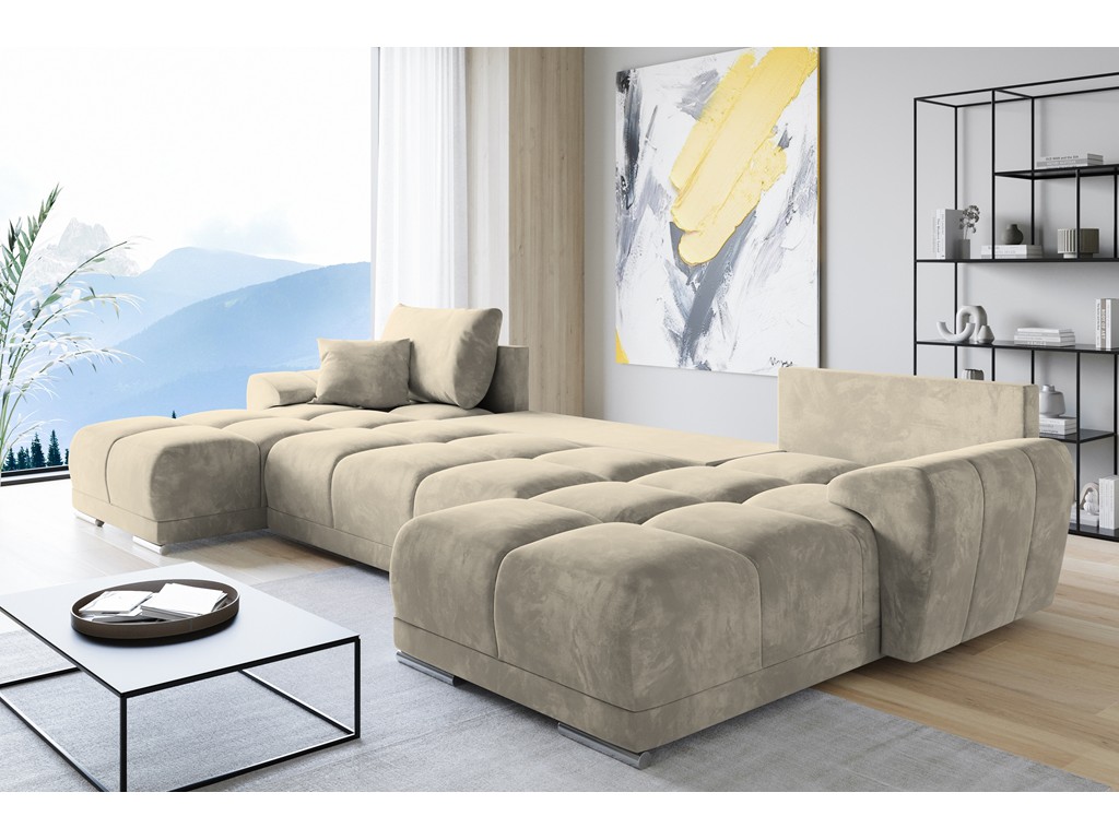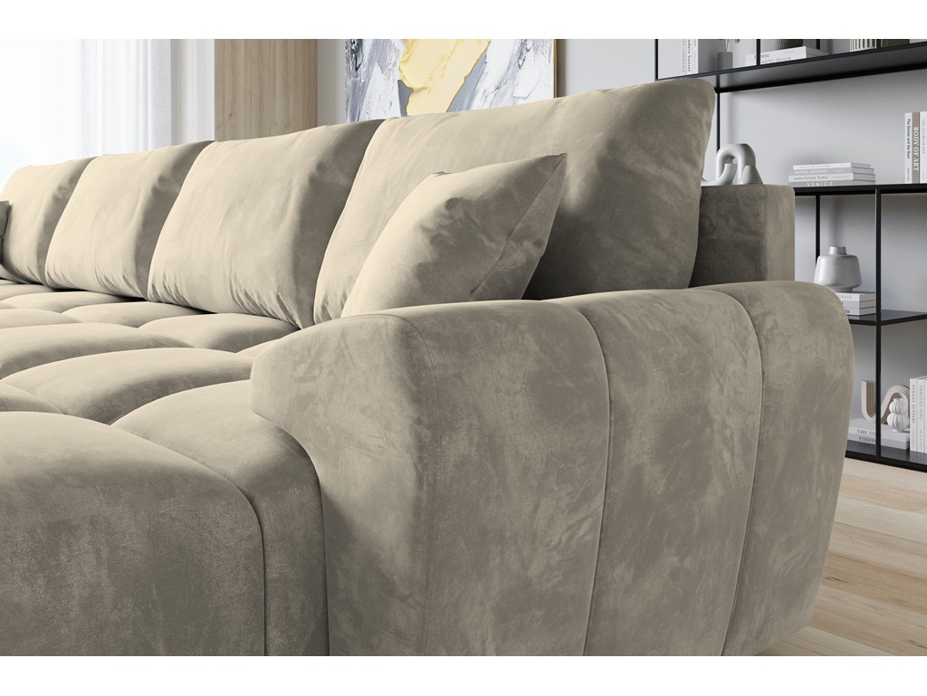 Narożnik Bego U z funkcją spania welur Monolith 04 beżowy