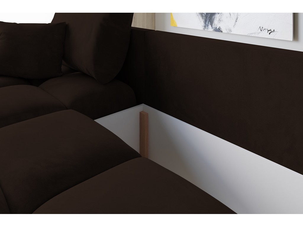 Model Bego L MO-29 to narożnik, który łączy elegancję ciemnego brązu z funkcjonalnością.