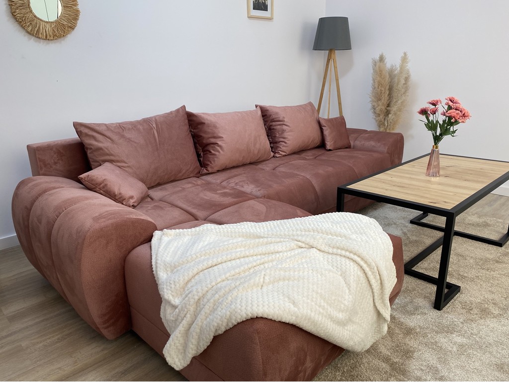 Narożnik Bego L MO-63 to elegancki model z funkcją spania 130x220 cm, wykonany z miękkiego weluru Monolith w kolorze brudny róż. Łączy przytulny wygląd z praktycznymi rozwiązaniami, takimi jak pojemnik na pościel i uniwersalny montaż strony. Idealny do nowoczesnych i skandynawskich wnętrz. ⟵Zobacz całą kolekcję Bego