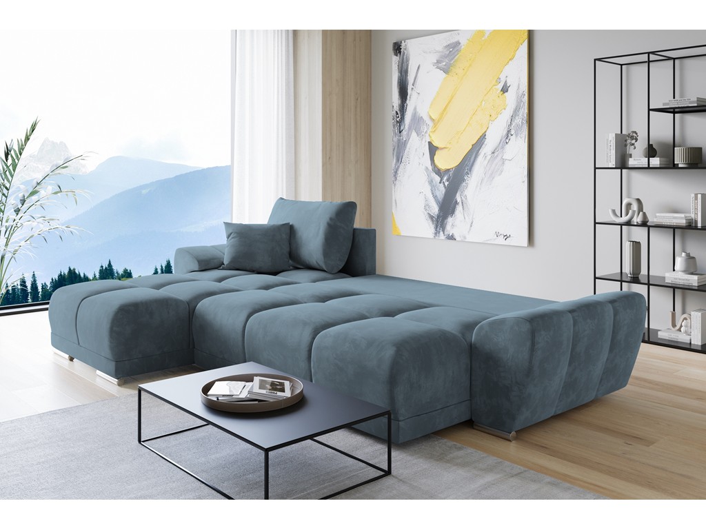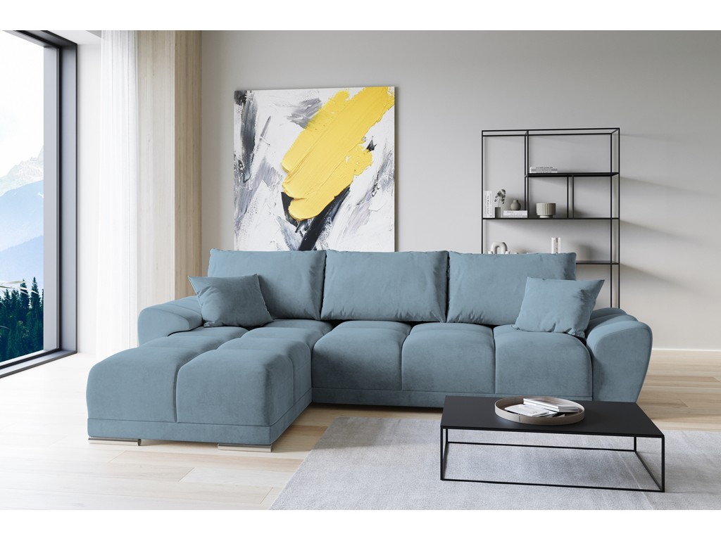 Narożnik Bego L z funkcją spania welur Monolith 72 błękitny