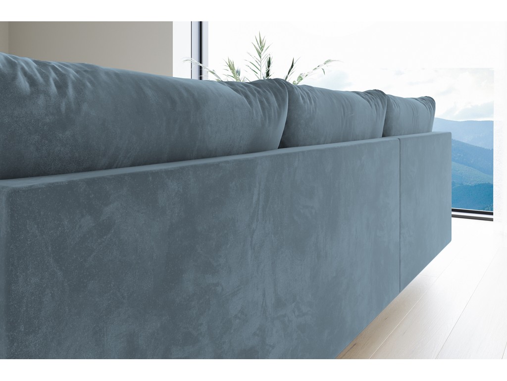 Model Bego L MO-72 w odcieniu błękitnego weluru wprowadza do salonu świeżość i harmonię.