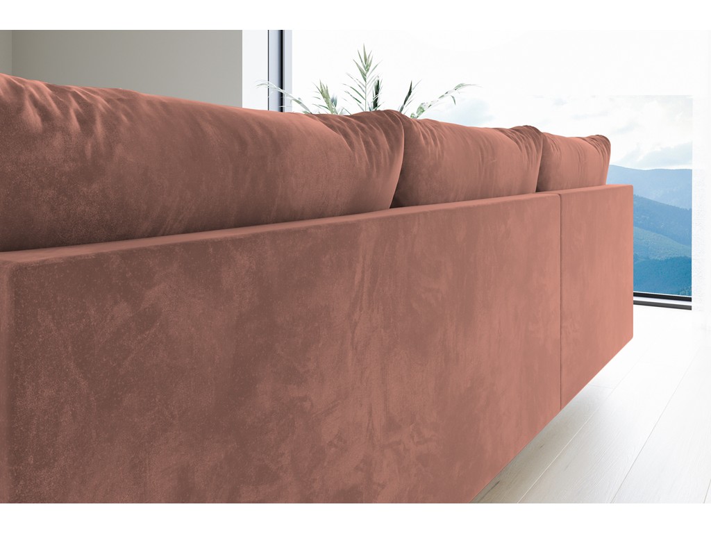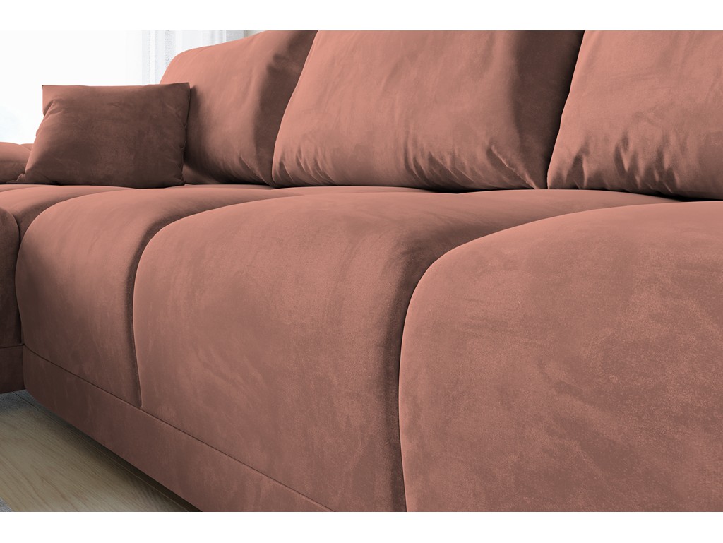 Narożnik Bego L MO-61 w odcieniu morelowym rozświetla wnętrze i nadaje mu przyjemnego, ciepłego klimatu.