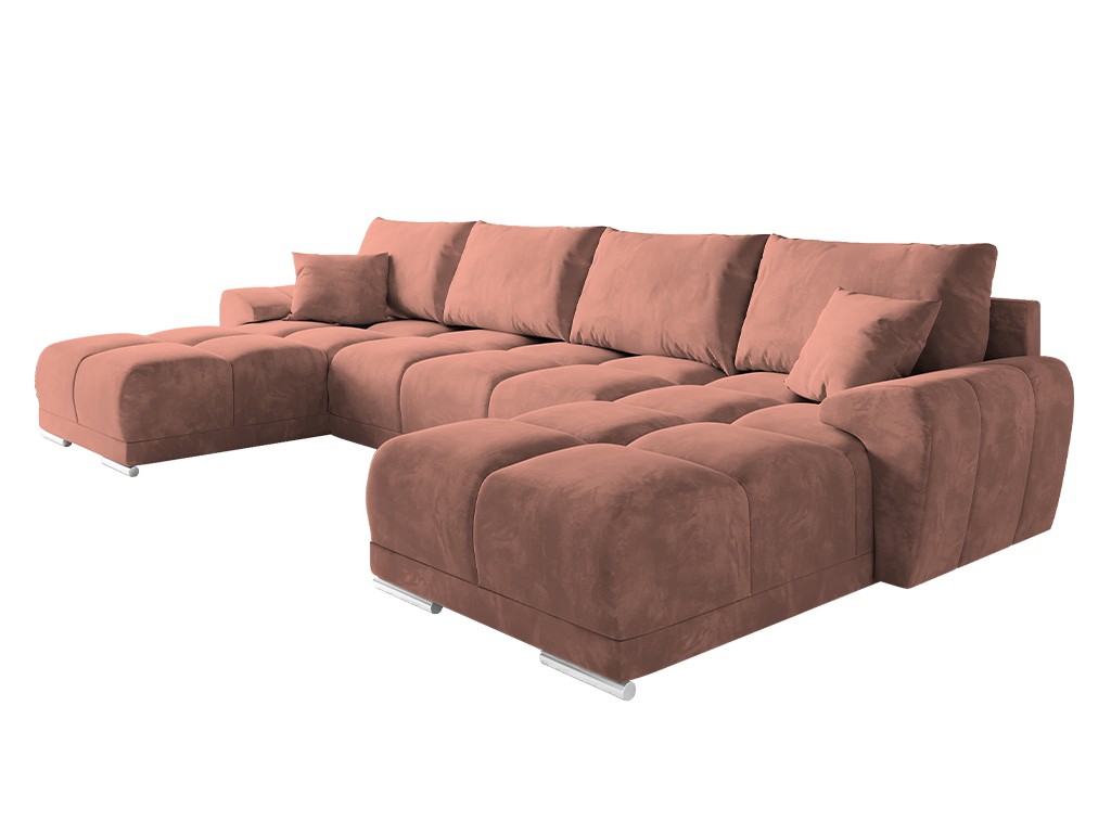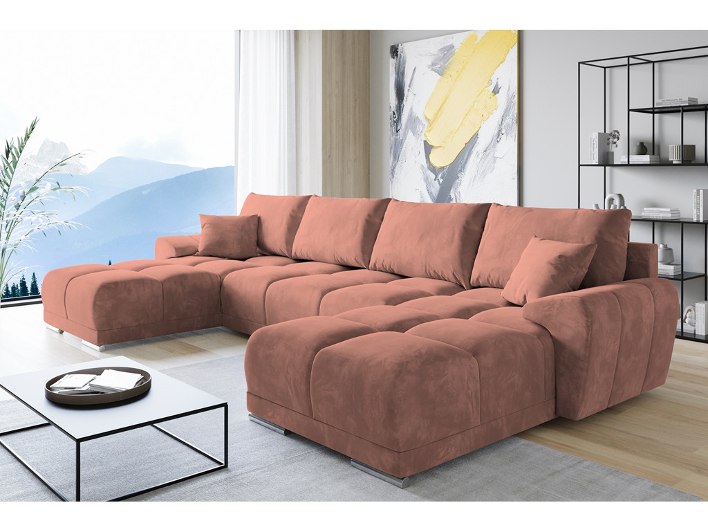 Bego U MO-61 to narożnik stworzony z myślą o nowoczesnych wnętrzach, w których liczy się przestrzeń i harmonia. Ciepły kolor morelowy rozjaśnia pomieszczenie, a miękka tkanina sprzyja codziennemu relaksowi. To mebel, który łączy estetykę z funkcjonalnością w duchu soft minimalism.