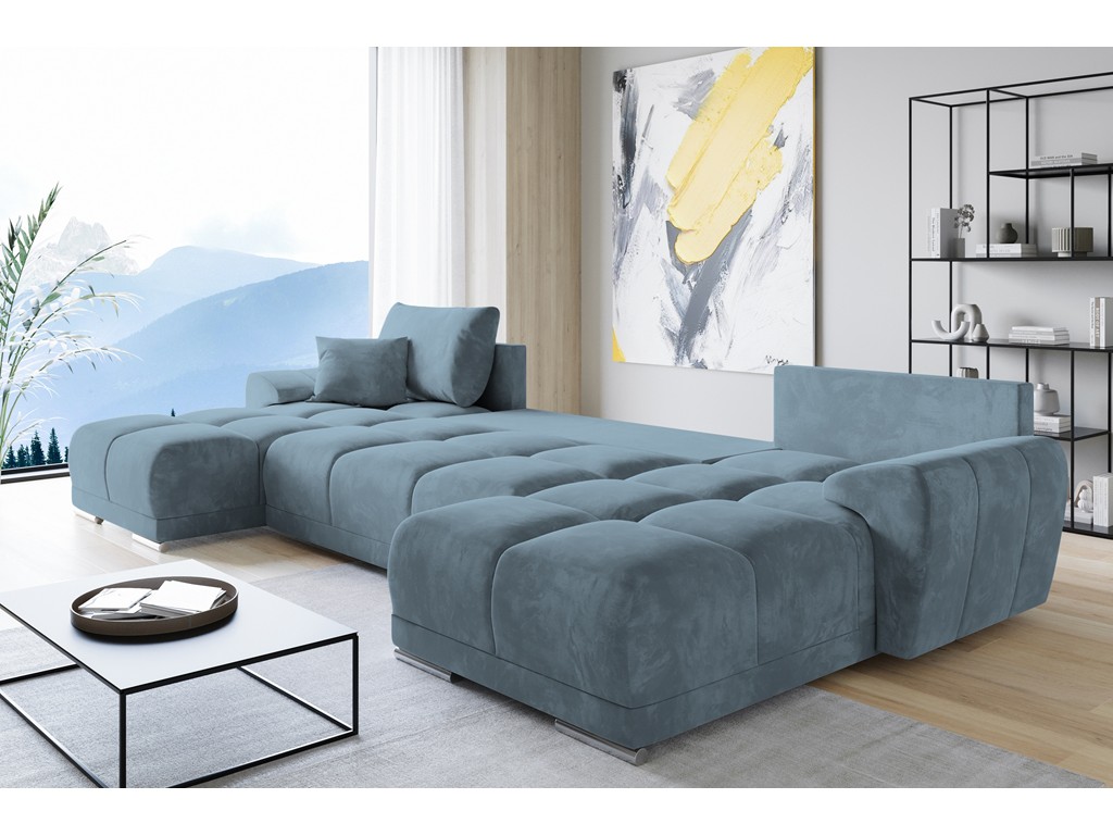 Narożnik Bego U z funkcją spania welur Monolith 72 błękitny