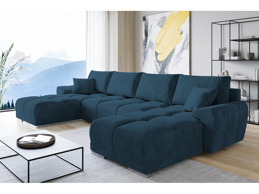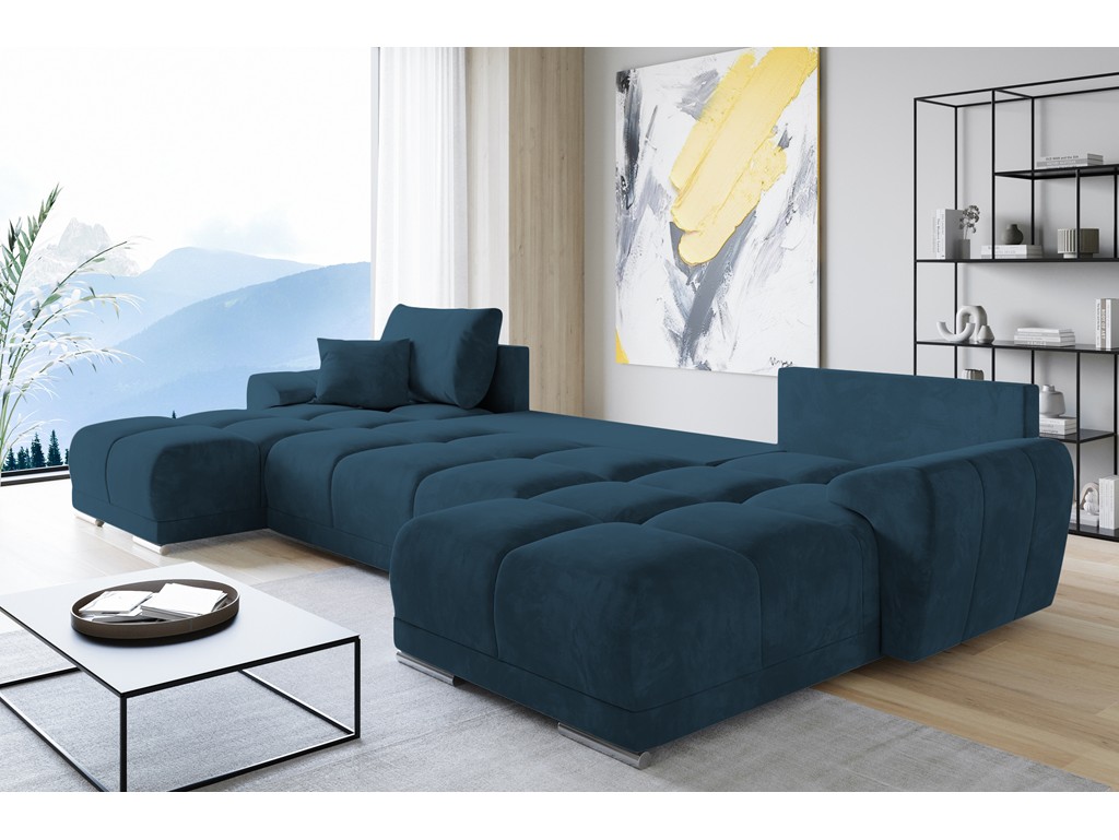 Narożnik Bego U z funkcją spania welur Monolith 76 lazurowy