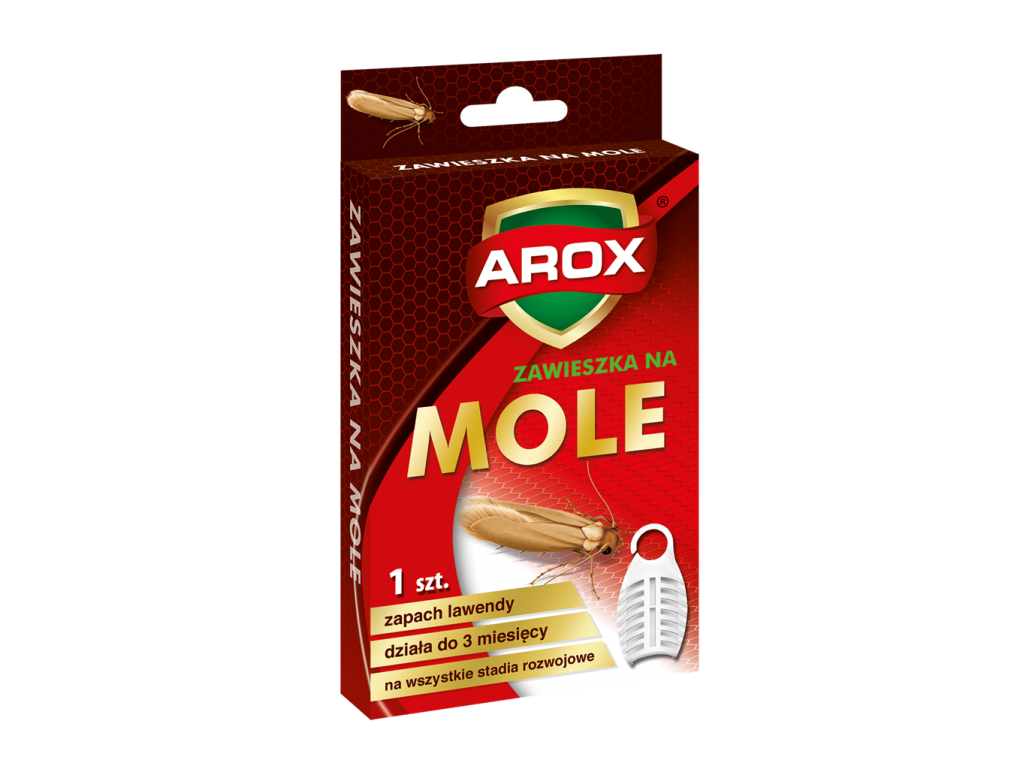 Zawieszka na mole skutecznie zabezpiecza odzież przechowywaną w szafach, szufladach, garderobach przed niszczącym działaniem tych szkodników. Zwalcza mole w każdym stadium rozwojowym: jaja, larwy i osobniki dorosłe. Produkt ma przyjemny lawendowy zapach. Płytka tekturowa nasączona substancją czynną w ilości 300 mg