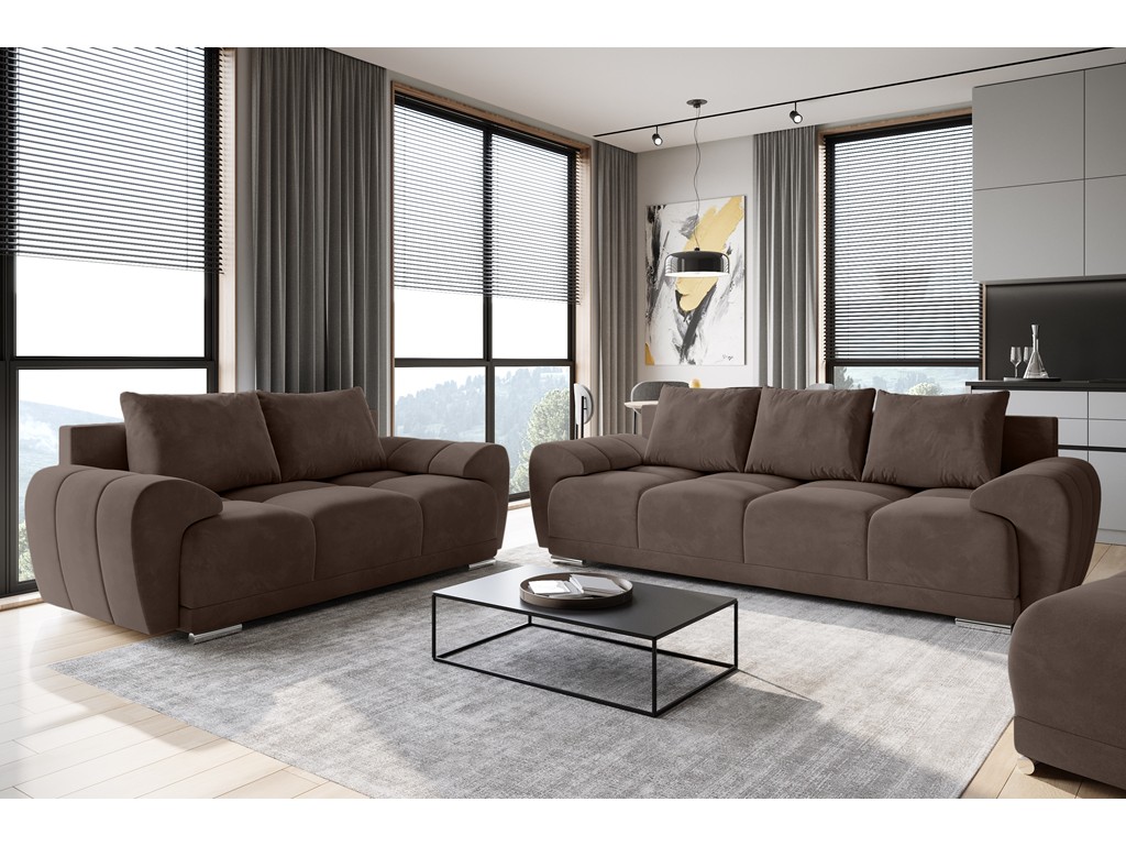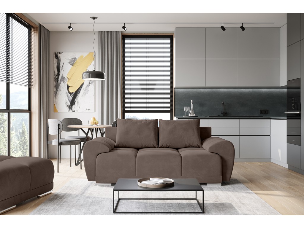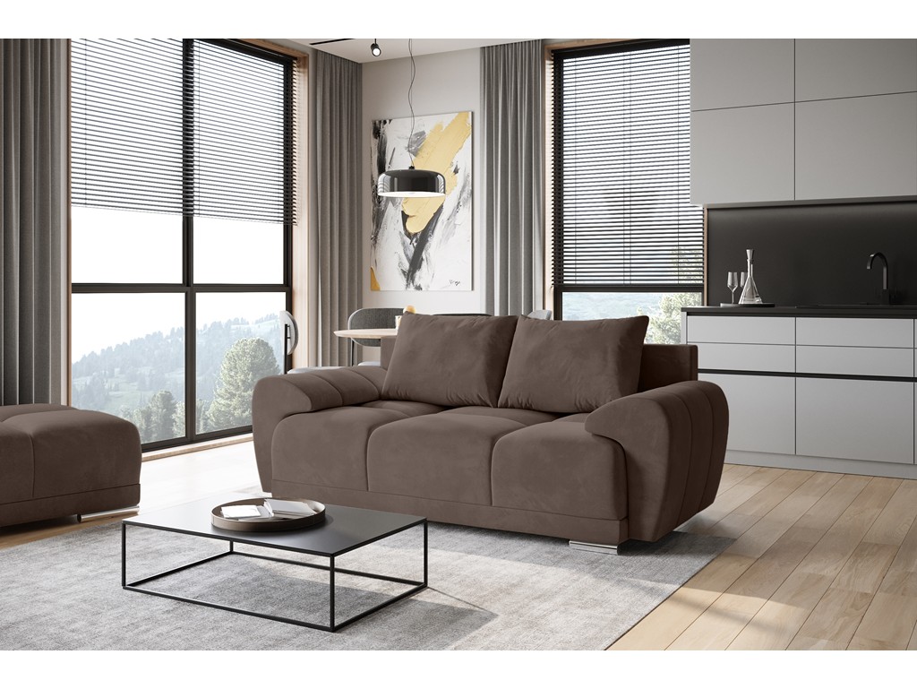 Sofa Bego 2 MO-15 w odcieniu mlecznej czekolady wprowadza do wnętrza ciepło i spójność kolorystyczną.