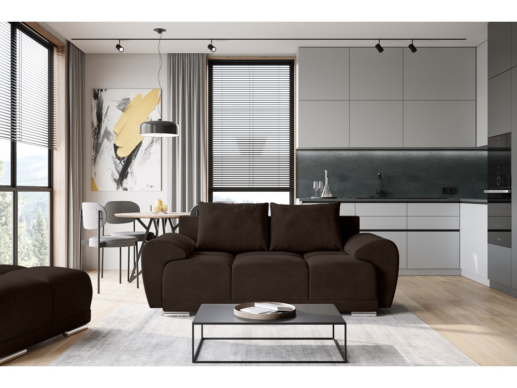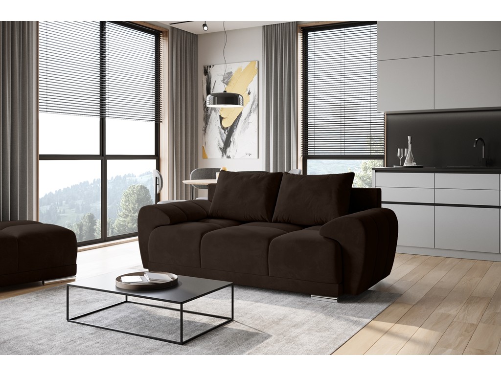 Sofa Bego 2 to kompaktowy i elegancki mebel do salonu, kawalerki lub biura. Tapicerowana miękkim welurem Monolith 29 w odcieniu ciemnego brązu łączy wygodę z trwałością tkaniny EasyClean. Solidna konstrukcja i lekka forma sprawiają, że doskonale dopasuje się do każdego wnętrza, oferując komfort użytkowania na co dzień. ⟵Zobacz całą kolekcję sof