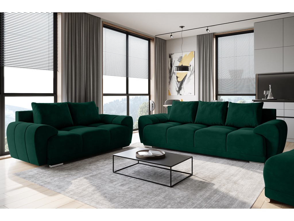 Sofa Bego 2 w zielonym welurze Monolith 37 wprowadza do wnętrza świeżość i nowoczesny charakter.